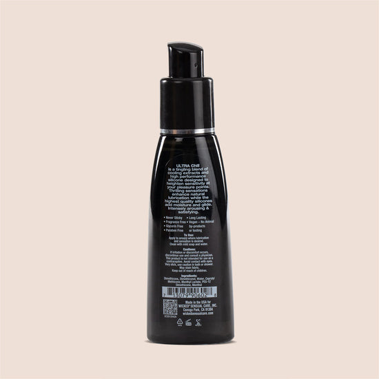 Wicked Ultra Chill Cooling Silicone-Based Lube is a tingling blend of cooling extracts and high-performance silicone, designed to heighten sensitivity at your intimate pleasure points. Thrilling sensations enhance natural lubrication while the highest quality silicone adds moisture and glide. Intensely arousing and satisfying.