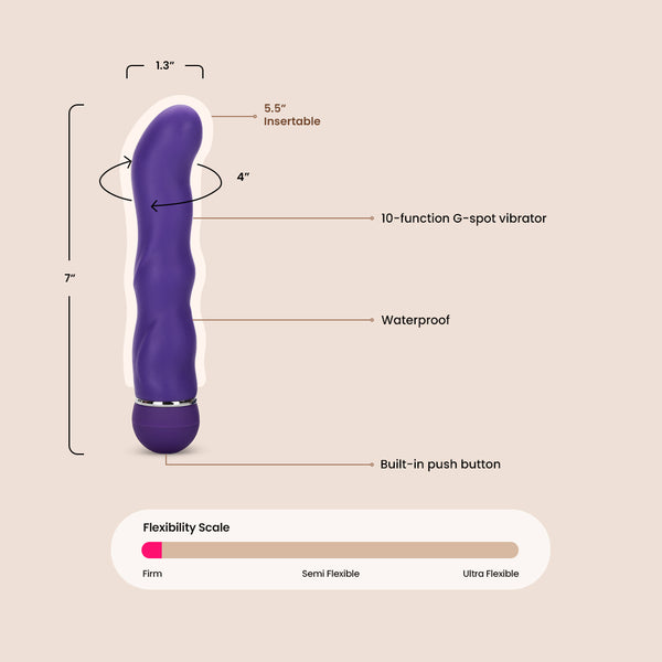 The shaft blends seamlessly into delicious contouring and a subtly wavy texture that excites nerve endings on its way in and around sensitive areas.