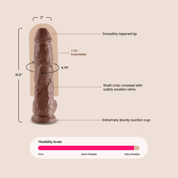 Every vein, every shaft, and every head is carefully handcrafted with exquisite detail to give you the most realistic experience ever imagined. The powerful suction cup base sticks to nearly any flat surface and makes every dildo harness compatible.