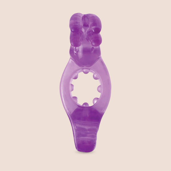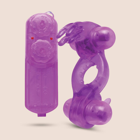 It's a cring, clitoral stimulator, and ball teaser all-in-one! One bullet provides exciting clitoral stimulation as the wabbit's ears flutter'¦ the other pulsates against his testicles for a thrilling buzz. A snug squeeze from the stretchy cring ensures a stiff erection and prolonged action for both of you! You control the intensity of each bullet with the adjustable controls, so slide the wabbit on and dial in the fun. Remove the bullets from the cring and create your own fantasy. Either way, it's wonderful fun!