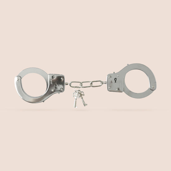 These standard-style handcuffs will help bring your fantasies to life when you secure your lover in their cold, hard grasp! Metal keys are included to tease your partner with as you play with their vulnerable body! Cuff them in front of them or behind them, to a bedpost, a leg of the table, a chain from the ceiling, or wherever you please! These classic handcuffs are an essential part of any toy collection.