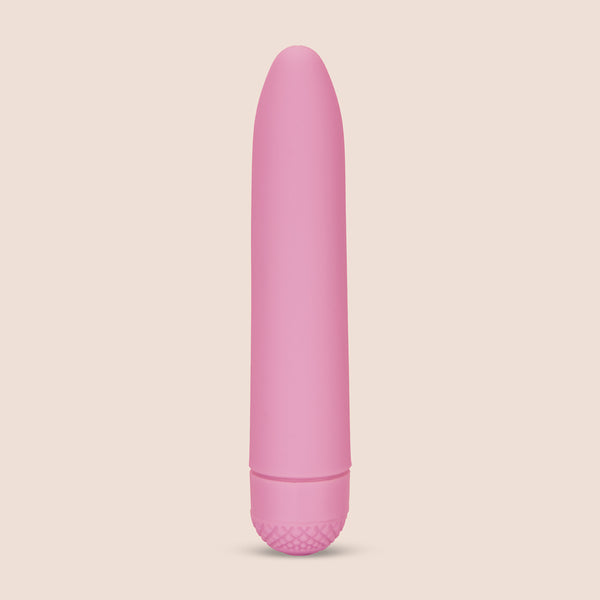 The elegant and lightweight First Time Mini-Vibe is designed with your intimate, sensual pleasure in mind. The stylish vibe has a velvety smooth finish that will heighten and intensify your arousal every time. The discreet petite-sized vibe measures a compact 4.5”x 1”/ 11.5 cm x 2.5 cm and features a solid shaft, a curved bullet-shaped tip, and intense multi-speed vibrations.