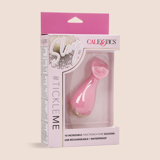 Slip the tickling Slay™ #TickleMe into your purse or handbag for knee-shaking pleasure wherever you go. The petite arouser fits between your fingers to let you deliver pinpoint tantalization and thrill with flickering vibrations. Get playful while you flicker through 10 indulgent vibration, pulsation and escalation functions with the easy-touch control button. The ultra-plush, full coverage arouser and flickering tongue-like teaser are great for exploring sensual sweet spots and intimate pleasure points with ease.