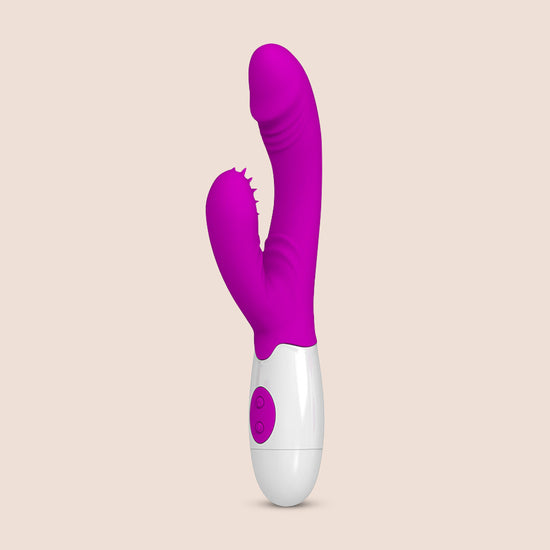 Hey there, love bunny! Are you ready to get your bunny on? This dual rabbit stimulator is going to hit all the right spots and make you quiver with delight. The curved shaft is going to reach deep and give you those inner hot zones the attention they deserve. And the silicone petals on the clitoral stimulator? They're going to give your love bud the ultimate massage and make you purr with pleasure. Plus, you can customize your experience with 7 powerful vibration modes and 3 modes of squirm. Trust us, this little bunny is going to make your hoppiest dreams come true.