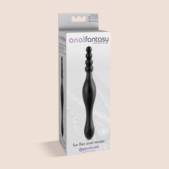 If you've never tried anal play, the Fun Flex Anal Teazer is just what you need to explore the amazing world of anal stimulation. The Fun Flex Anal Teazer features two ends that are both suitable for fun! Start out with the smooth tapered shaft before graduating to the beaded shaft, which features a tip of just .5" to ease entry before gradually expanding to .75". The flexible shaft bends with your body's contours to hit just the right spot, while each end acts as a sturdy retrieval handle for safe and easy handling. Enjoy the thrilling sensations of anal pressure and pleasure by popping one bead in at a time, inserting as many as you feel comfortable with before gently tugging the handle to release each bead for even more stimulation. Try tugging your Fun Flex Anal Teazer mid-orgasm for the most explosive climax you've ever imagined! Insertable Length, Beads: 2.5 in. (6.2 cm) Insertable Length, Smooth: 3 in. (7.5 cm) Width: 1.25 in. (3.2 cm)