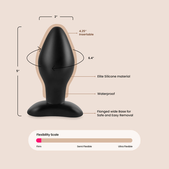 At 2" wide with an insertable length of 4.25", the Large Silicone Plug has a tapered tip for easy entry, a bulb that provides extra sensation, and a narrow neck that allows your muscles to wrap around and hold it in. The ergonomic design of the base ensures that it won't slip too far inside while still fitting comfortably between your cheeks. Our ultra-hygienic Elite Silicone® is phthalate-free, hypoallergenic, and can be worn all day for long-lasting fun. Cleanup is a snap after the fun with Refresh® Toy Cleaner and warm water.