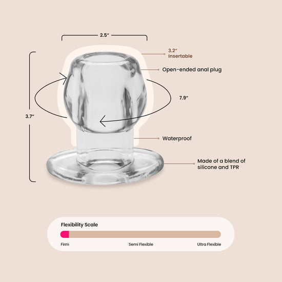 Instead of just plugging someone’s butt, you can open it and let your imagination go wild. The incredible tunnel hole that goes all the way through the plug, clearing the way for various play including lube insertion, fingers, watersports and toys. And, the clear version also makes it possible to see right into the other person.
