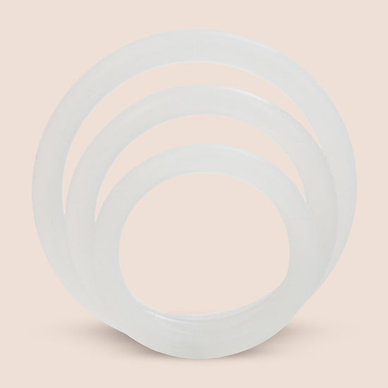 Made from pure, body safe and incredibly hardy silicone, this little pack of Support Rings (otherwise known as c rings) can help maintain a stronger erection while providing support. In 3 different sizes, the Rings can be worn over the base of the penis, or looped around the base and balls; if you're a c ring beginner, start with the largest and work your way down- the smaller the ring gets, the tighter it'll be. Use a good quality water based lube with the rings if needed, and store them away from other silicone toys, if possible. Sized at 2.4, 2 and 1.6 inches wide respectively.
