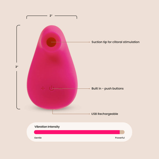 VeDO Suki Rechargeable Vibrating Sucker sends powerful pulsating waves while simultaneously vibrating your entire clitoris. The sleek design lends itself to effortless control as the finger holder easily fits between your index and middle fingers, allowing you to maneuver the silky, smooth silicone mouth over your clitoris for maximum pleasure. Completely submersible, this pulsating vibe is up for any type of water play - night in and night out.