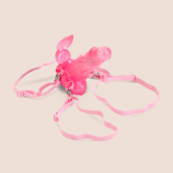 This pretty pink treat is designed for lots of stimulation; it features a firm, realistically shaped jelly shaft to be worn inside, while a bunny clit stimulator with long ears sits at the perfect angle.