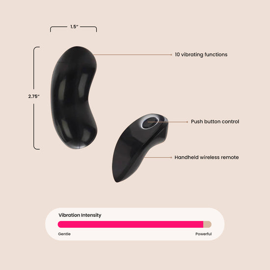 Once in place, the vibrator is activated by an even more discreet handheld wireless remote with over 12 feet of range; it controls an amazing 10 different functions of vibration, pulsation and escalation that are guaranteed to keep you interested.