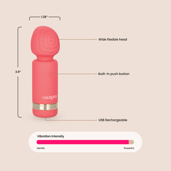 Slip the tickling Slay™ Exciter into your purse or handbag for knee-shaking pleasure wherever you go. The mini wand massager fits between your fingers to let you deliver pinpoint tantalization and thrill with flexible vibrations. Get playful while you flicker through 10 indulgent vibration, pulsation and escalation functions with the easy-touch control button. The ultra-plush silicone and wide flexible head are great for exploring sensual sweet spots and intimate pleasure points with ease.