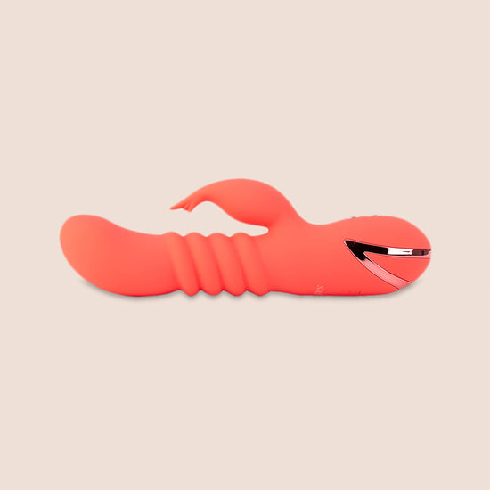 While the flickering stimulator teases, the ribbed shaft and curved tip delivers deep thrusting, g-spot stimulation. The curved tip has a powerful back-and-forth action to make sure you always hit the right spot. The teasing tickler uses a powerful vibration motor to deliver blissful external stimulation. The flexible teaser can be used independently from the thrust function for fully customizable pleasure.
