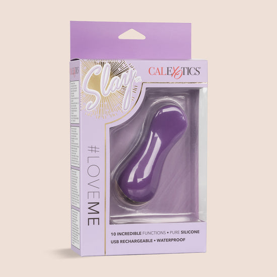 Slip the tickling Slay™ Lover into your purse or handbag for knee-shaking pleasure wherever you go. The curved massager fits between your fingers to let you deliver pinpoint tantalization and thrill with contoured vibrations. Get playful while you flicker through 10 indulgent vibration, pulsation and escalation functions with the easy-touch control button. Effortlessly control pure pleasure with an easy-touch silicone button and hold for 3 seconds to turn on or off.