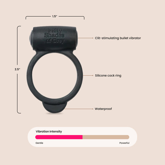 Spice up your love life with the Fifty Shades of Grey Yours And Mine Vibrating Love Ring! This fun and exciting c ring is an exclusive from the Fifty Shades of Grey Collection, and it's an ideal sex toy accessory for to bring even more naughty play to the bedroom.