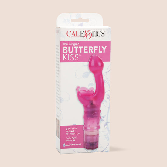 The Original Butterfly Kiss is the ultimate power-packed intimate massager, designed with nothing but pure, orgasmic pleasure in mind. This multi-speed arouser is super soft and delicately shaped to tantalize and tease for dual pleasure. The smooth, angled bud at the tip of this vibrator is made for targeted G-spot stimulation and the butterfly’s intense fluttering antennae massage and stimulate the clitoris to climax perfection.