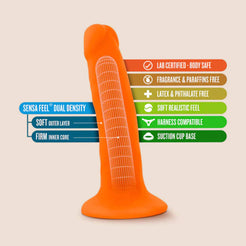 Light up your life with this bright, realistic Neo dildo! The dual density, softer outer and firm inner core deliver an ultra realistic feel. The sturdy suction cup base holds to any smooth flat surface. The wide base is also harness compatible and safe for anal play! To clean use soap and water, or a toy cleaner then let air dry. Made from latex, fragrance and Phthalate free PVC.