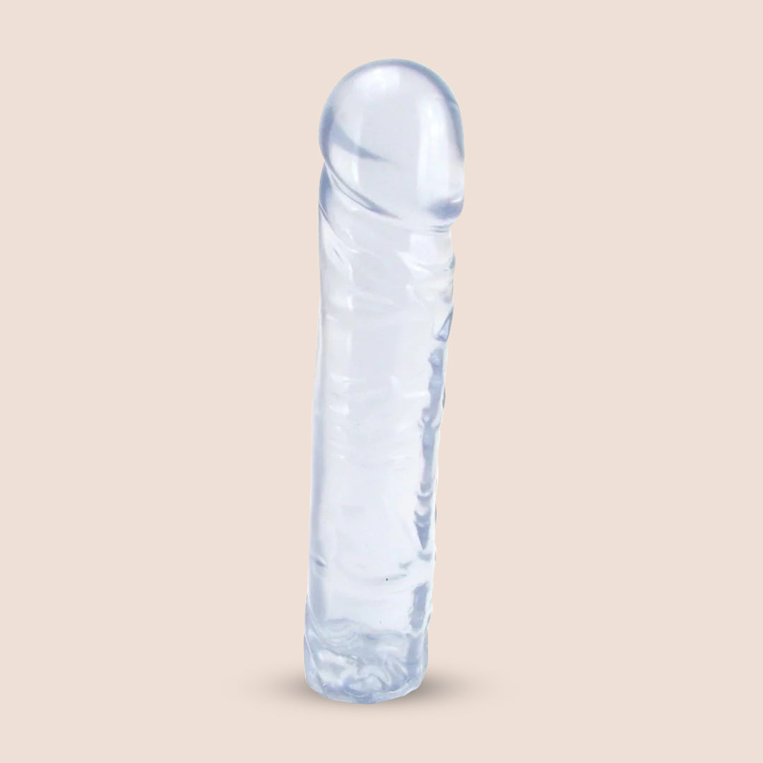 It's a satisfying 8 inches of insertable length with a girth of 5 1/4 inches around and a soft, pliable, but gently firm jelly rubber material that's designed to look and feel like the real thing; it's sure to please you many times over.