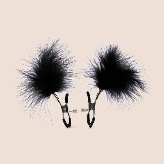 Adorn your nips with these sexy feathered clamps that keep you engaged and aroused with soft and hard sensations. Thumb screws allow for total precision control of pressure and pain while the delicate cock feathers tantalize and tickle with every movement. Savor the sweet pain of adorable agony as you play on your own or with a partner, elevating the erotic energy.