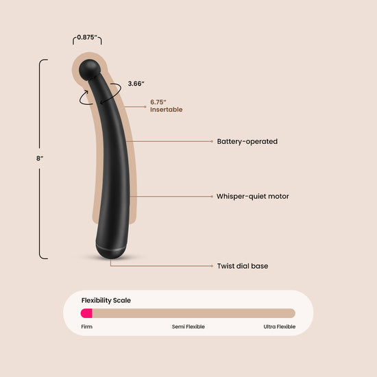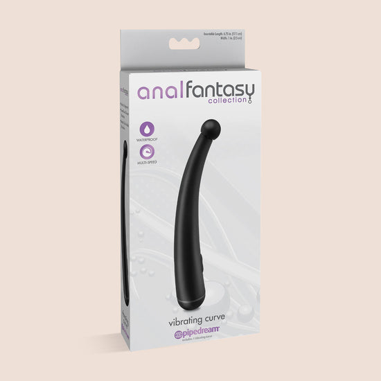 If you've never tried anal play, the Vibrating Curve is just what you need to explore the amazing world of anal stimulation. The Vibrating Curve features a curved shaft and beaded tip perfect for P-Spot stimulation, while the whisper-quiet motor delivers mind-blowing vibrations directly to your most sensitive area. Use the multi-speed dial at the base to take you from a flutter to a throb in seconds. Try filling yourself with the Vibrating Curve during other sexual stimulation and you'll climax harder than ever before! Cleanup is a snap after the fun with the included Refresh® Toy Cleaner and warm water. Every Anal Fantasy box features a FREE 5-piece prep kit to help you ease into comfort and clean up afterwards. The kit includes two finger sleeves, Anal Eaze Insertz® Cream, Moist® Anal Lube, and Refresh® Toy Cleaner. Insertable Length: 6.75 in. (17.1 cm) Width: 1 in. (2.5 cm)