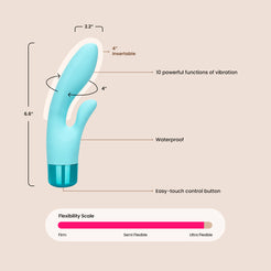 Whether you're taking a dip with a lover or indulging in a steamy solo session, look forward to up to hours of waterproof vibration. Power up your pleasure vibe with 2 AAA batteries. The flexible massager is made from a hygienically superior silicone. This body safe material is unscented and phthalate free to keep your most sensitive spots happy and healthy.