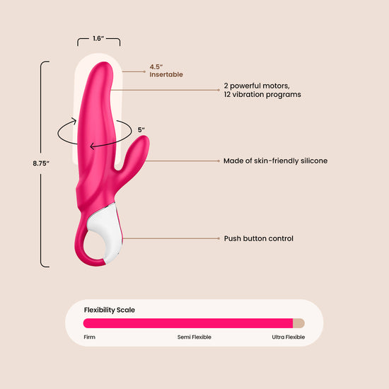 Somebunny alert! Don't let the cute bunny design fool you, Mr. Rabbit is here to make you scream with pleasure. This toy's silky-smooth surface and flexible shaft, coupled with a skin-friendly silicone clitoris stimulator, will hug your curves in all the right places. And with 12 tantalizing vibration programs, Mr. Rabbit knows how to hit all your sweet spots with impressive power, giving you both vaginal and clitoral pleasure. Plus, with two powerful motors, you can trust Mr. Rabbit to bring you to intense orgasmic bliss. He's a true pro when it comes to lovemaking, if yo