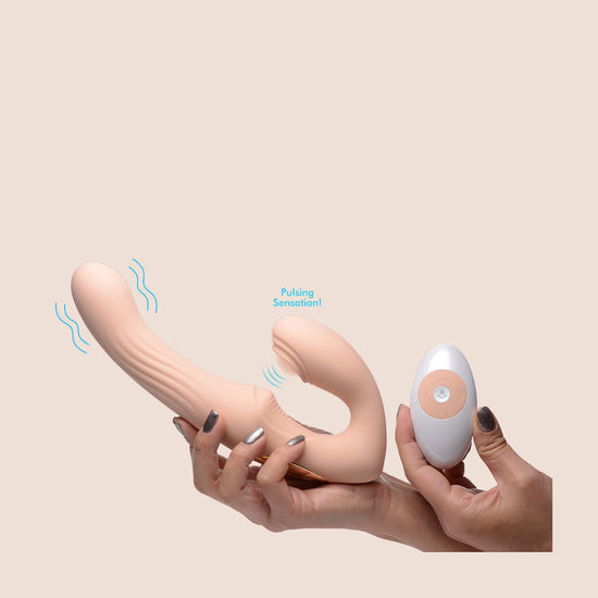 But wait, there's more! The U-Pulse is a treasure trove of pleasure possibilities. With 3 speeds and 5 vibration patterns on both the phallic shaft and clitoral pad, plus a mind-boggling 7 intense g-spot pulsing patterns on the vaginal bulb, this bad boy guarantees an adventure-filled ride. You can even mix and match the functions for a customized pleasure experience. Want easy control? The base of the shaft features handy controls, or grab the included wireless remote controller for a truly convenient play session. Get ready to strap on the fun, baby!