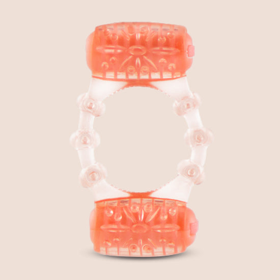 The Two-O® vibrating ring features two mini motors attached to a super-stretchy and comfortable ring that gives couples simultaneous stimulation for more satisfying sex. Simply stretch the ring around the shaft and testicles with the motors positioned above and below to ensure perfect placement. The top motor vibrates against the clitoris with every movement while the bottom motor buzzes against his testicles for mutual pleasure and enhanced orgasms with ease! Switch each motor on and when the batteries run out, simply toss the Two-O away and leave the evidence behind!