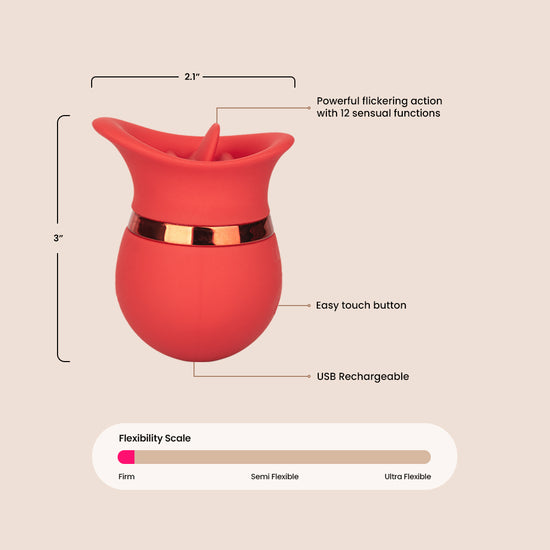 But this massager isn't just a one-trick pony - the full contact scoop and fluttering tongue teaser have been expertly crafted to contour to your most intimate pleasure points. Made with soft, supple silicone and a sensually contoured body, you'll be able to deliver pinpoint pleasure from almost any angle.