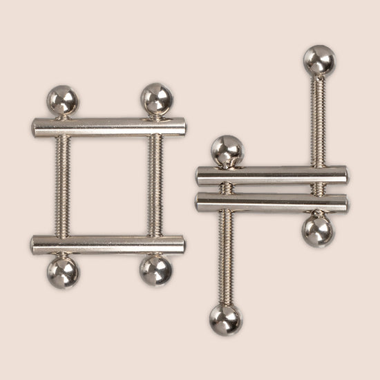 The fully adjustable crossbar design lets you control the pressure. Screw the crossbars closer together for a tight fit, or move them further apart for a looser fit. These nipple vices offer a totally customizable pleasure experience, and the fully-adjustable design allows for use on all body types.
